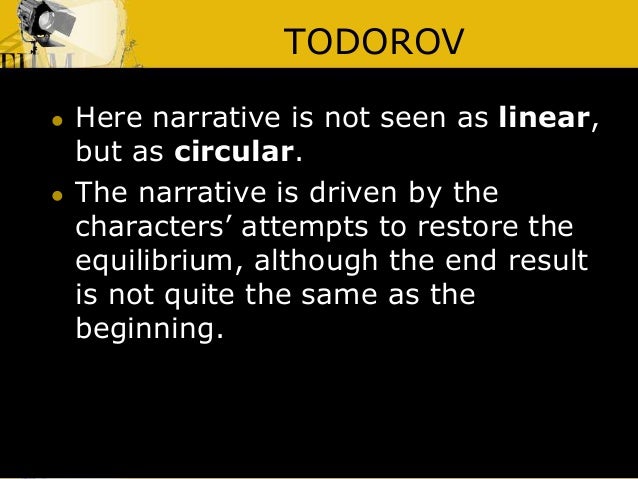 - 18. TODOROV Here narrative is not seen as linear, but as circular. The narrative is driven by the characters’ attempts to restore the equilibrium, although the end result is not quite the same as the beginning.