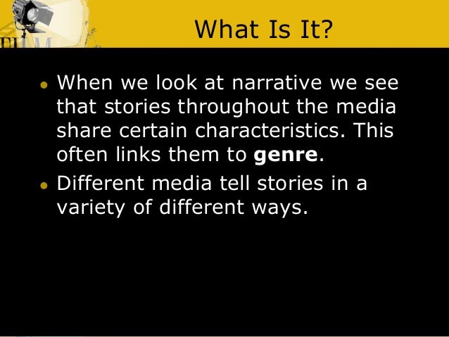 - 3. What Is It? When we look at narrative we see that stories throughout the media share certain characteristics. This often links them to genre. Different media tell stories in a variety of different ways.